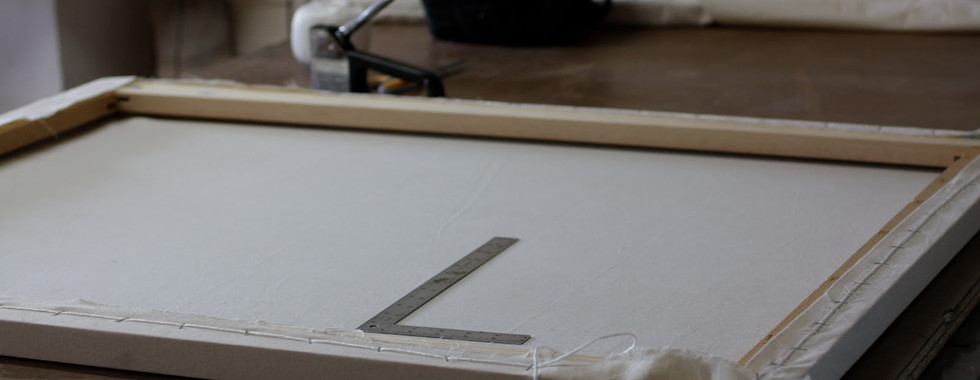Lining: The original canvas was adhered to a new secondary support (lining) to provide overall stability, ensure even tension, and reinforce the area of the tear repair.