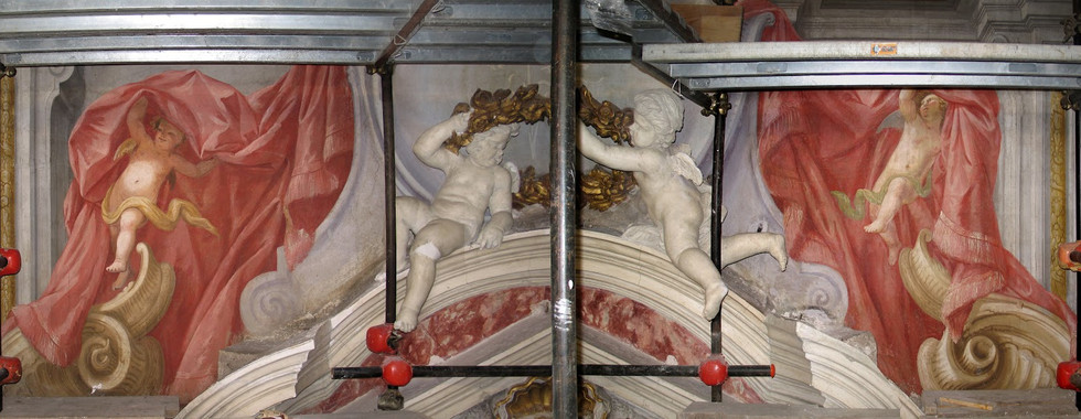 Realizado no Conservatório de Santa Maria degli Angiolini, em Florença, este projeto envolveu a complexa remoção de um afresco seco do século XVII que cobria uma obra original do século XVI. O principal desafio foi expor com segurança o mezzo afresco subjacente, preservando sua delicada integridade estrutural.